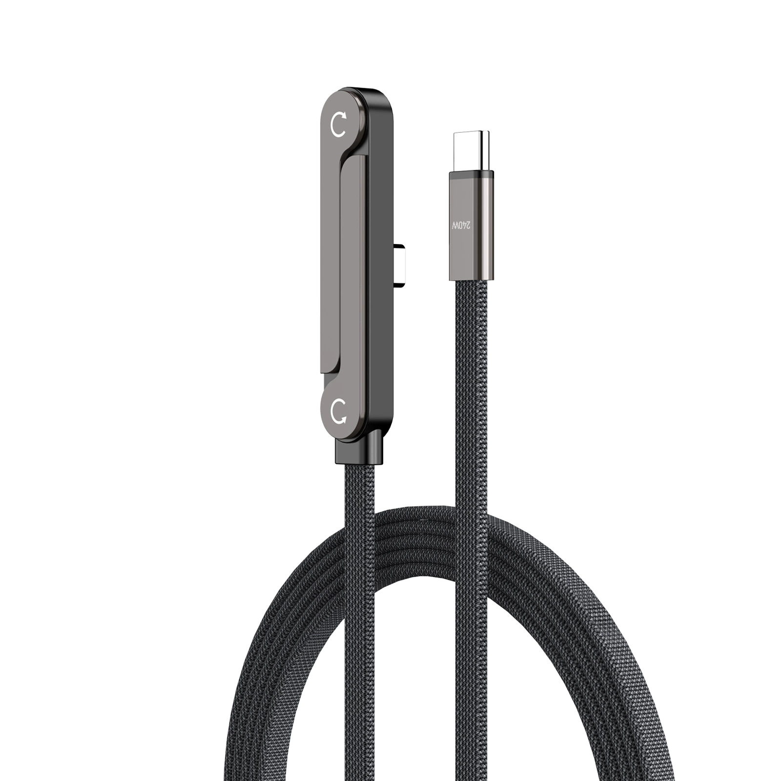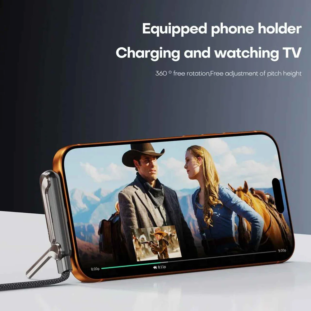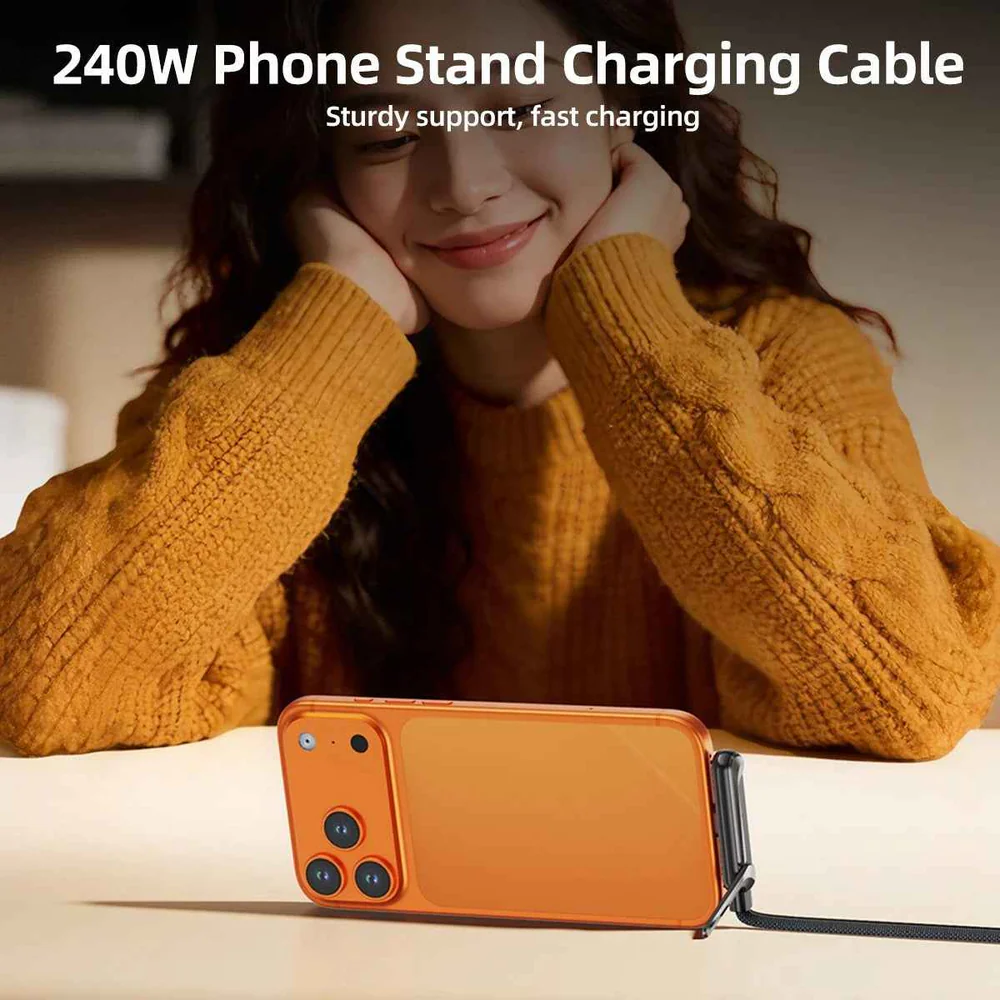 T-Shaped Fast Charging Cable – Braided Zinc Alloy, Right-Angle Design, Foldable Phone Holder (1.5 Meter)